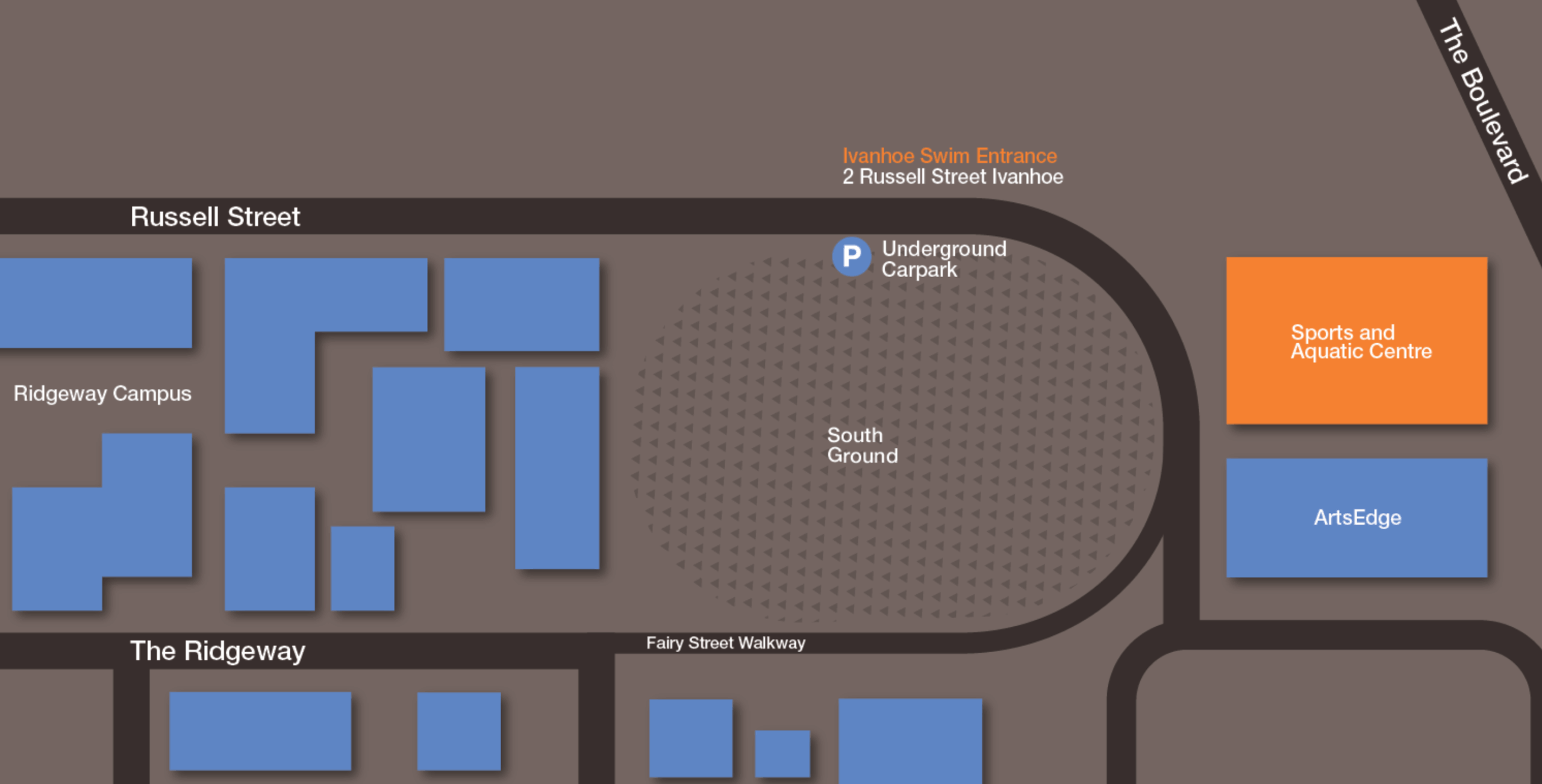 At our Ivanhoe Campus, the underground car park takes the hassle out of parking and protects you and your car from the weather. Entrance to the underground car park via 2 Russell St, Ivanhoe. It is located conveniently next to our Sports & Aquatic Centre.